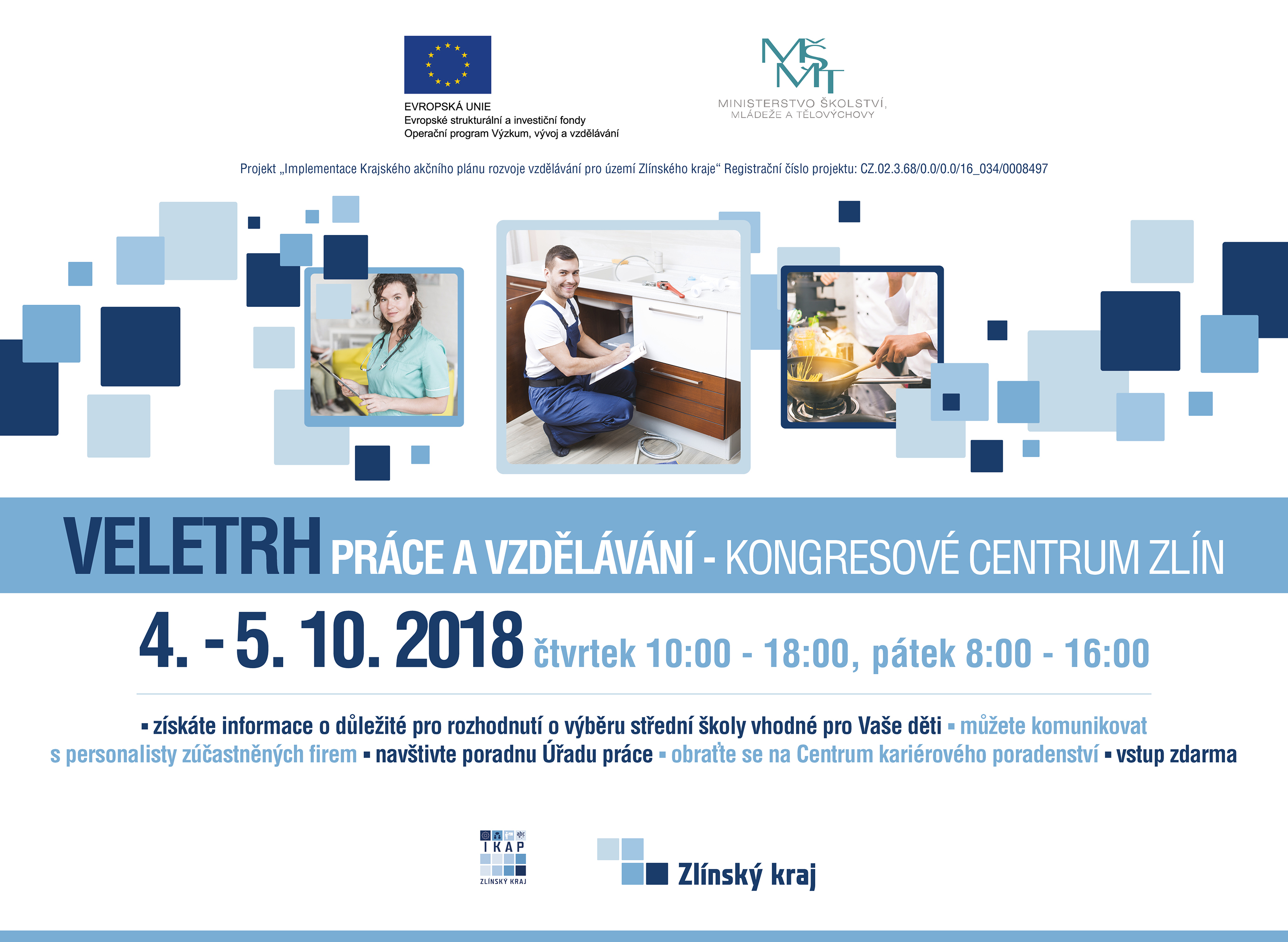 Zveme vás na na Veletrh práce a vzdělávání ve Zlíně, který proběhne ve dnech 4. - 5. 10. 2018.