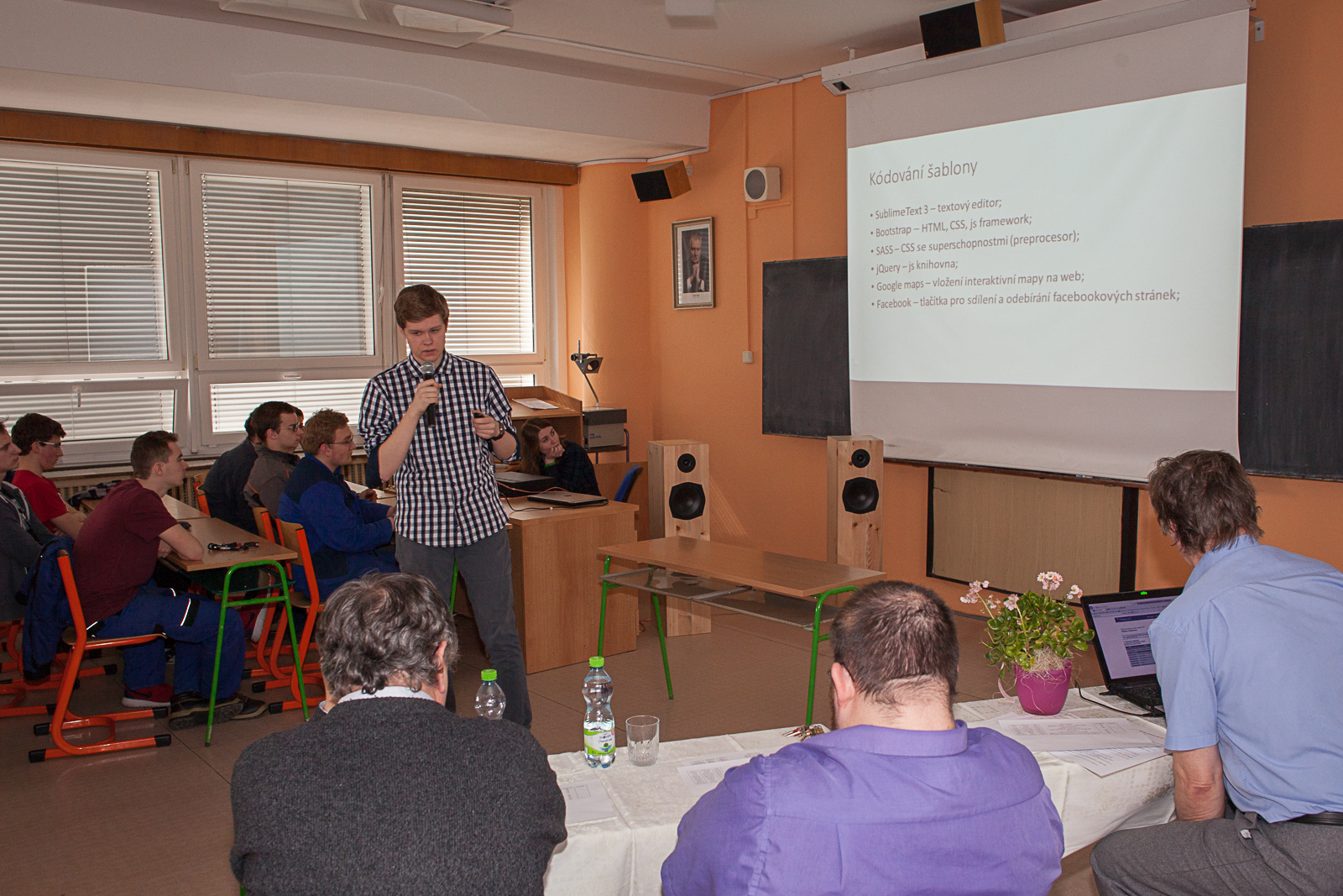 Ve 12 hodin všechny soutěžící přivítal zcela zaplněný sál. Diváci byli z řad studentů čtvrtých ročníků, kteří přišli své spolužáky podpořit a zároveň se podívat, jak vypadá obhajoba práce, která bude většinu z nich čekat v rámci maturitní zkoušky. Soutěžící byli velmi kvalitně připraveni a jejich výkony všichni sledovali se zaujetím.