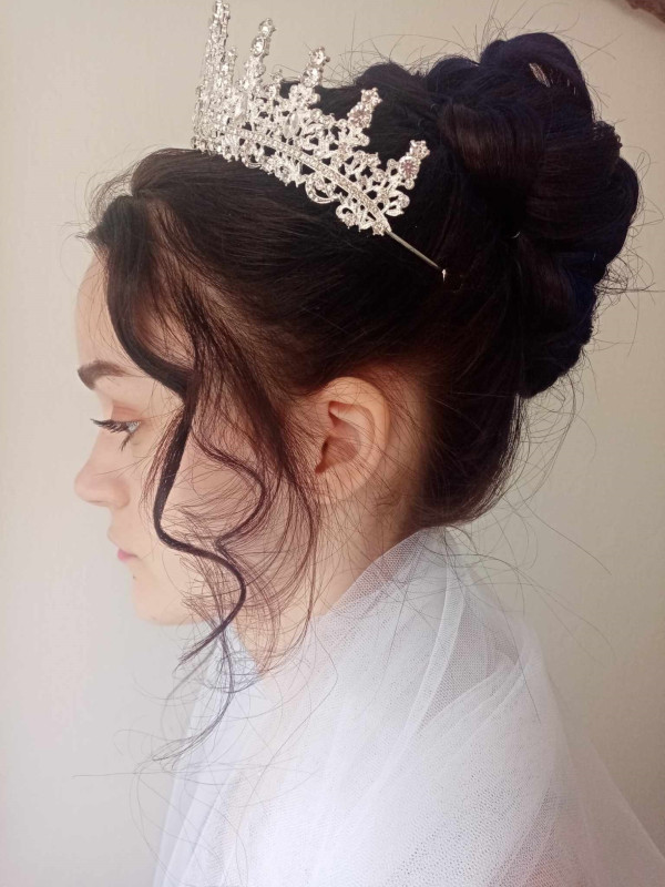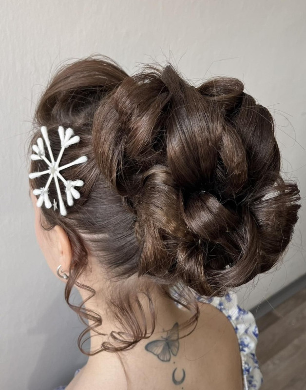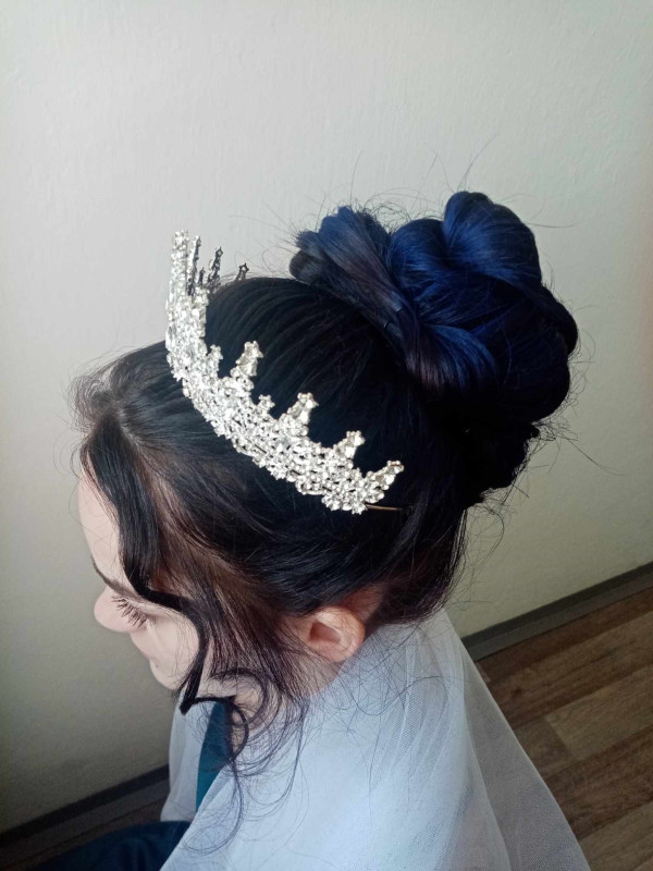 Žákyně druhého ročníku v rámci souborné práce zhotovovaly účesy na téma „ ZIMNÍ KRÁLOVNA“.