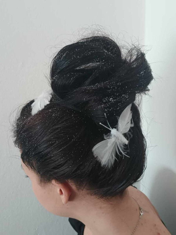 Použily vlastní návrh účesu. Dle své fantazie si modelky také nalíčily a zakomponovaly do účesu vlasové ozdoby, které samy vyrobily. Příprava a samotné kreativní tvoření účesu žákyně bavila. Práce na účesech všem přinesla mnoho inspirace, nových poznatků i zábavy.